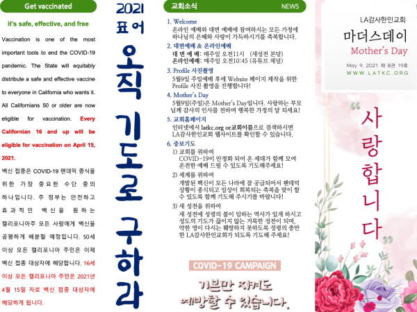 5월9일 Mother's Day 페이지 정보 작성자 LA감사한인교회 댓글 0건 조회 3,064회 작성일 21-05-08 13:56 목록 본문 5월9일 Mother's Day 이전글5월16일 주일예배 21.05.15 다음글5월2일 주일예배 21.05.01 댓글 0 댓글목록 등록된 댓글이 없습니다. 목록